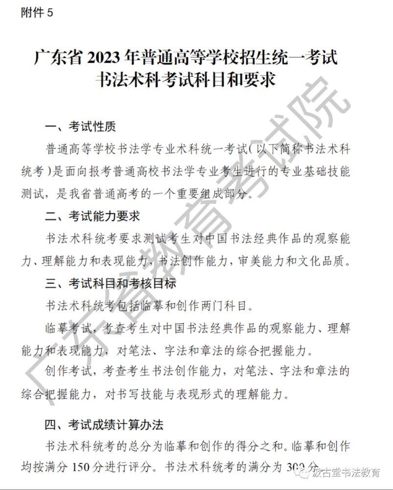 关于广东省2023年普通高等学校招生统一书法统考有关事项的通知